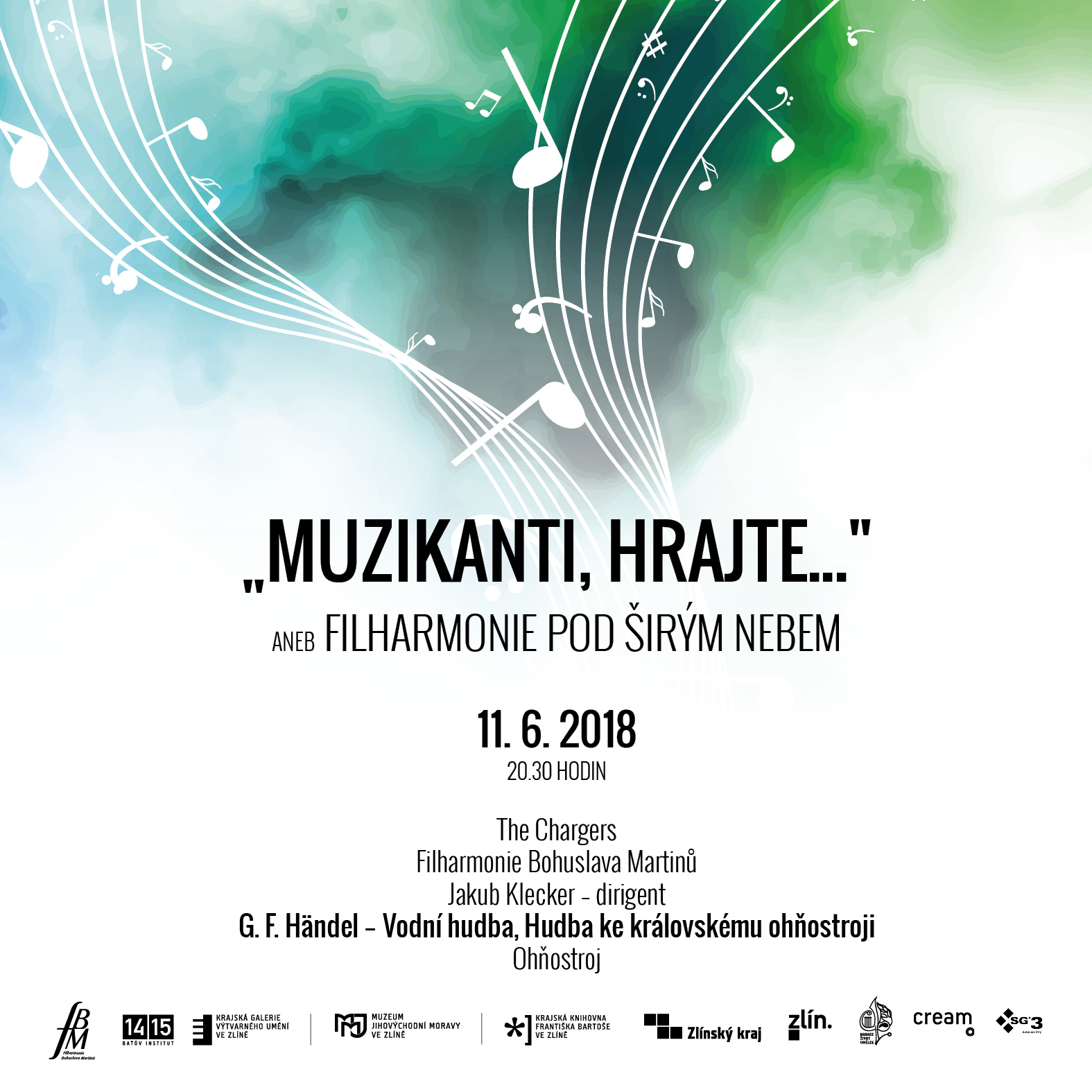 Vodní hudba a Hudba k ohňostroji v podaní Filharmonie Zlín. Při samotném finále budete svědky velkolepého ohňostroje.